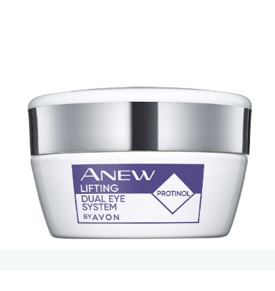 Sięgnij po nowy, ulepszony podwójny program liftingujący okolice oczu z Protinolem™ - opatentowanym przez Avon składnikiem, który zwiększa skuteczność i szybkość działania naszego bestsellerowego kosmetyku. Żel na powieki zapewni im efekt liftingu i widocznie je ujędrni, a krem zredukuje widoczność obrzęków pod oczami i pomoże wygładzić zmarszczki. Podwójny program liftingujący okolice oczu wyraźnie uniesie skórę i przywróci jej sprężystość, a efekty zobaczysz już po 2 dniach*!