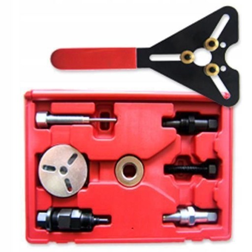 ZESTAW DO DEMONTAŻU TARCZY SPRZĘGŁOWEJ ,SPRZĘGŁA I KOŁA PASOWEGO SPRĘŻARKI. NIEZBĘDNY PRZ NAPRAWACH I REGENERACJI KOMPRESORÓW W SKŁAD ZESTAWU WCHODZI 8 ELEMENTÓW DEMONTUJĄCYCH