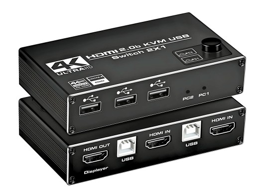 Przełącznik KVM pozwala podłączyć 2 komputery do 1 monitora i używając jednocześnie jednego zestawu klawiatury z myszką.