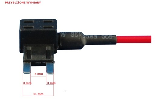 Przejściówka do bezpiecznika samochodowego MINI (ATS 11 mm) umożliwia podłączenie urządzenia bezpośrednio do skrzynki z bezpiecznikami.