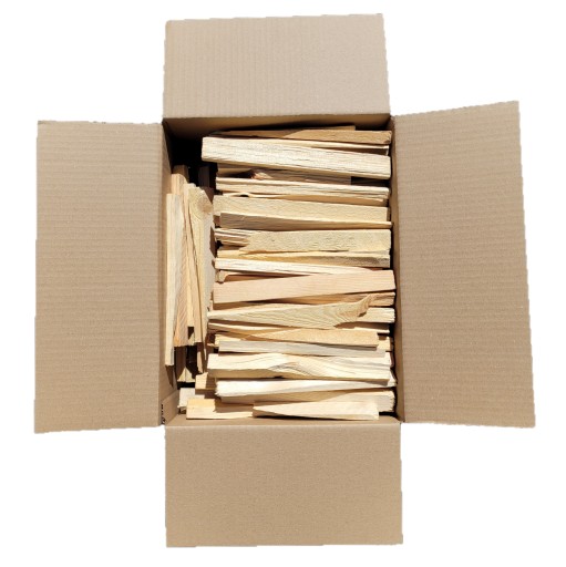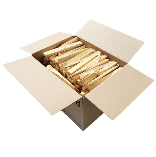 - Rozpałka wypakowywana jest z worków do kartonów, w celu wygodniejszego korzystania, a całość zabezpieczona folią stretch.