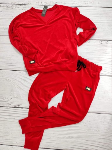 Rewelacyjny welurowy dres : bluza z dekoltem V-NECK , oraz spodnie z gumą w pasie. Wygodny, doskonale nadający się na każdą imprezę, czy spotkanie ze znajomymi. Idealny do każdej stylizacji, na każdą okazję.