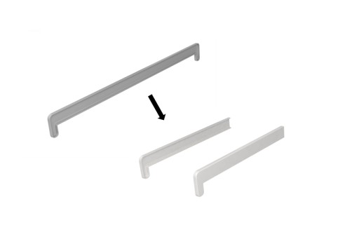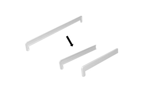 Zaślepkę należy we własnym zakresie przeciąć na pół żeby otrzymać komplet do zaślepienia obu końcówek parapetu, następnie dociąć na wymaganą długość czyli szerokość parapetu.