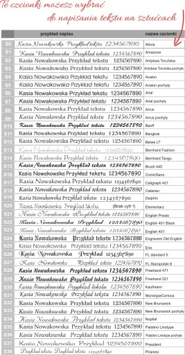 - nazwa czcionki na sztućcach