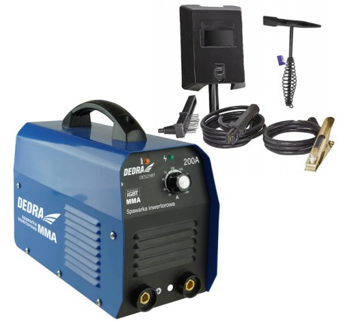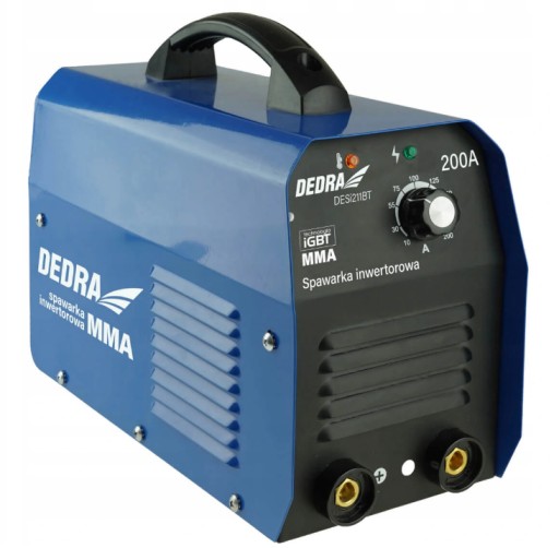 Spawarka inwertorowa MMA DEDRA DESI211BT o maksymalnym prądzie spawania 200A przeznaczona do spawania łukowego elektrodą otuloną o średnicy do 4mm takich materiałów jak stale węglowe, konstrukcyjne oraz żeliwa.