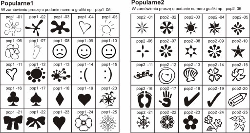 Do wyboru różne ozdobniki, czcionki i grafiki wg. poniższych wzorów.