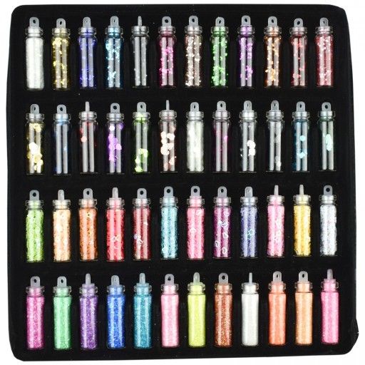 Zestaw 48 buteleczek ze zdobieniami do paznokci