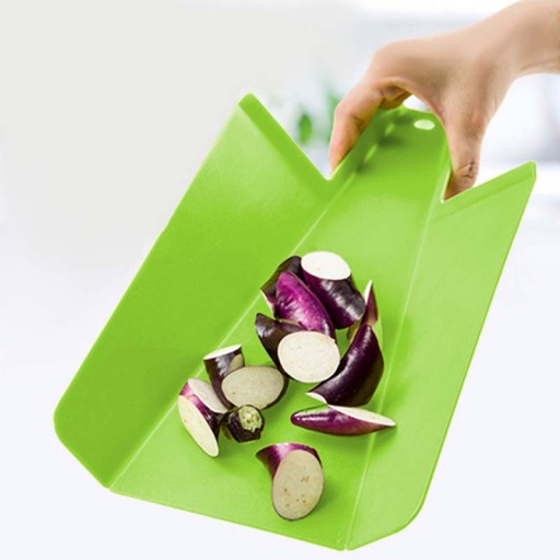 Dzięki funkcji składania uzyskujemy kształt który pozwala zsunąć przygotowane produkty do garnka, patelni czy miski.