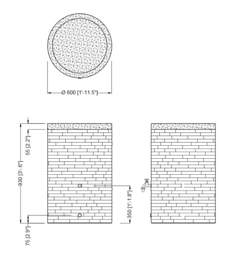 Okrągły zbiornik pozwala zebrać do 250 litrów deszczówki przydatnej do podlewania ogrodu. Jest wykonany z trwałego tworzywa sztucznego, które bez problemu znosi działanie trudnych warunków atmosferycznych. Wodę deszczową można łatwo przelać do naczyń, posługując się praktycznym kranikiem koloru mosiądzu