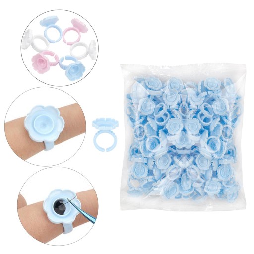 100x Klej Do Rzęs Pierścienie Fan Cup Klej Kubki Salon Kosmetyczny Klej Pierścionki Niebieski