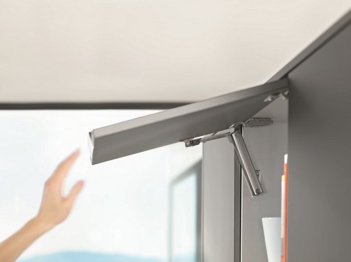 Niewielka konstrukcja sprawia, że AVENTOS HK-XS oferuje dużą swobodę projektowania małych szafek górnych. Oznacza to, że nawet korpusy o niewielkiej głębokości wewnętrznej, np. nad wyciągiem kuchennym lub umywalką, można wyposażyć w to rozwiązanie.