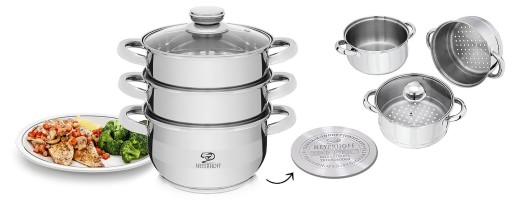 Garnek renomowanej marki Meyerhoff Stahl Waren AG wykonany z wysokiej jakości stali nierdzewnej idealnie nadaje się do codziennego gotowania dietetycznych posiłków dla osób ceniących zdrowy tryb życia. W garnku na parze przygotujemy mięso czy warzywa w sposób, który nie wymaga tłuszczu do ich obróbki termicznej. Dzięki temu, dania zachowają maksimum witamin i soli mineralnych oraz naturalny smak i aromat. Dwa wkłady parowe pozwalają na przygotowanie kilku potraw jednocześnie.