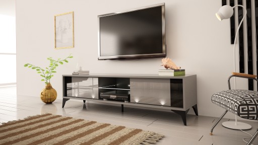 Szafka RTV to rozwiązanie dedykowane szczególnie dla nowoczesnych salonów. Jest jednocześnie minimalistyczna i elegancka, przez co spełnia oczekiwania najbardziej wymagających. Posiada 2 półki w tym jedną szklaną na sprzęty RTV jak również pojemne, otwierane półki na inne drobiazgi. Mebel dostępny jest w trzech konfiguracjach kolorystycznych: