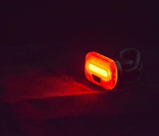 Przednia lampka wyposażona w jedną mocną diodę LED, natomiast tylna w pasek COB 15 LED.