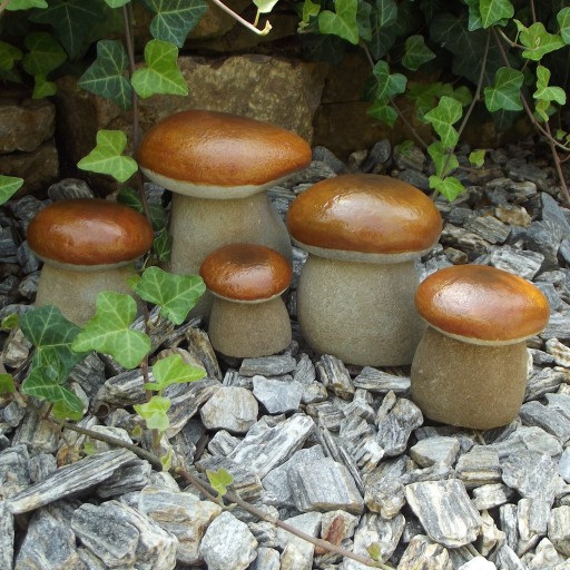Садовые фигурки боровиков из камней, набор из 5 штук.