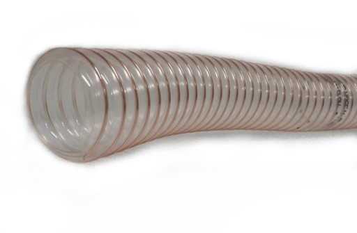 Wąż trudnopalny do podajnika pelletu fi 63. Wąż antystatyczny PUR 0,4 fi 63 do pracy w przemyśle drzewnym, chemicznym i tworzyw sztucznych, do transportu lekkich substancji stałych, a także do powietrza i gazu. Wąż do odpylania PUR Flex 0,4 fi 63 bardzo lekki i elastyczny. Elastyczny wąż wyciągowy PUR Flex 0,4 fi 63 do trocin i odpylania z dobrą rozciągliwością i dużą odpornością na ścieranie.