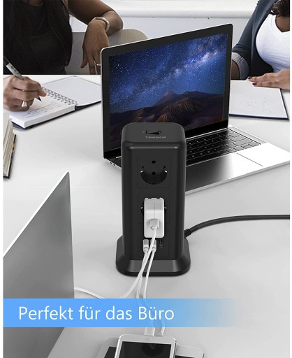 Kompaktowa konstrukcja: Ta czarna listwa zasilająca z USB ma ekskluzywną pionową konstrukcję. Dzięki kompaktowym rozmiarom (12 x 12 x 22 cm) ta wieża gniazdowa nie zajmuje zbyt wiele miejsca. Możesz postawić go w rogu lub na stole. Masz więcej gniazdek i miejsca na jednoczesne ładowanie większej liczby urządzeń elektronicznych. Pożegnaj splątane kable.