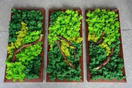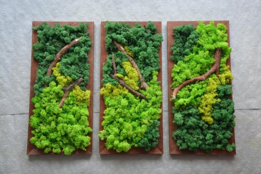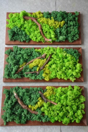 Chrobotek reniferowy na ścianie i obrazy z mchu