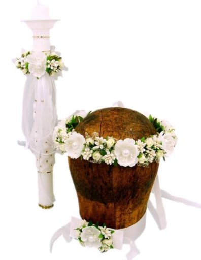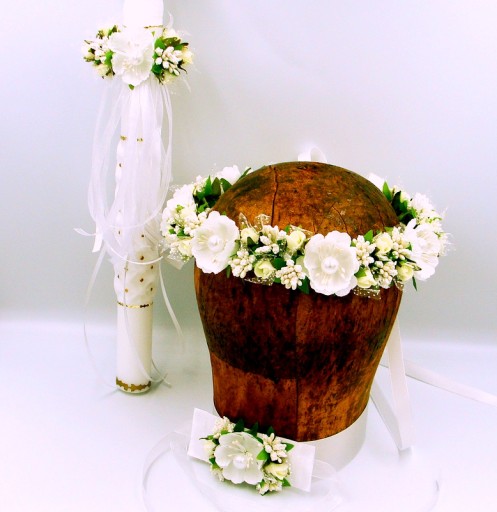 ZESTAW KOMUNIJNY WIANEK,OZDOBA ŚWIECY