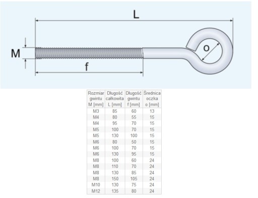 ŚRUBA NACIĄGOWA OCZKOWA M 8X100mm OCYNKOWANA