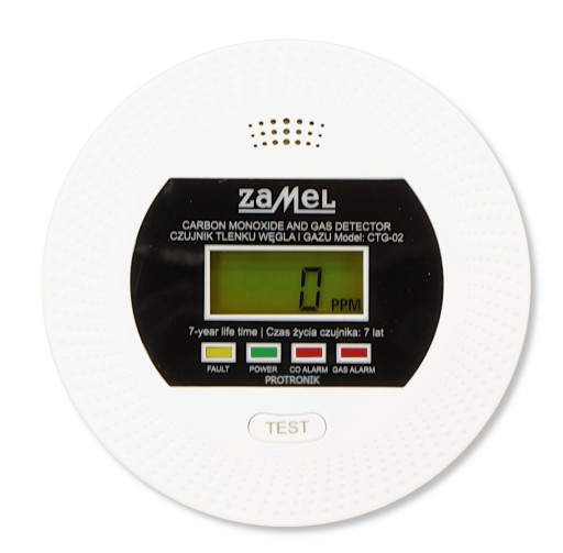 Czujnik CTG-02 służy do ciągłego monitorowania niebezpiecznego stężenia zarówno tlenku węgla jak i gazu ziemnego oraz propan butan w powietrzu. W momencie wykrycia niebezpiecznego stężenia urządzenie załącza alarm dźwiękowy i optyczny a także wyświetla poziom stężenia i rodzaj wykrytego gazu na wyświetlaczu LCD. Zasilany jest sieciowo (zasilacz w komplecie) ale posiada także awaryjne zasilanie bateryjne dzięki czemu będzie działał nawet po zaniku zasilania w instalacji. Wyposażony jest w zaawansowane czujniki półprzewodnikowe i elektrochemiczne oraz w układ auto-diagnostyczny który sygnalizuje uszkodzenie czujnika.Jest zgodny z najnowszą normą dla czujników czadu: PN-EN50291-1:2018.