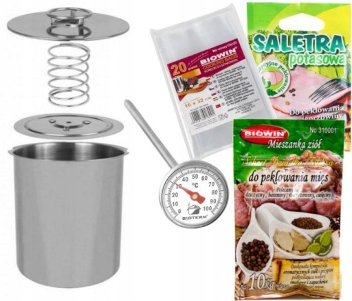 Biowin Zestaw SZY30SN Szynkowar na 3 kg mięsa z termometrem, przyprawy, saletra, woreczki