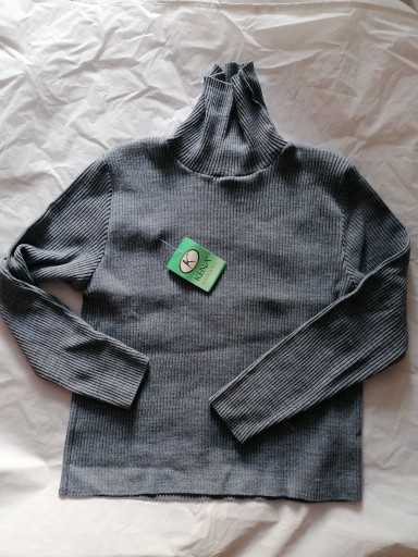 Śliczny NOWY sweter-golf, z kompletem metek. Producent KENA Wrocław. Skład: 100% PAN. Kolor: POPIEL. Wymiary: z metki na wzrost 162 cm, rozmiar M. dł całkowita: 53 cm., rękaw od ramienia 54 cm., biust:90 cm. (bez rozciągania. Zachęcam do kupna bo jest śliczny, dużo atrakcyjniejszy niż na zdjęciu. Tylko 1 sztuka.