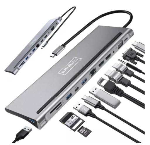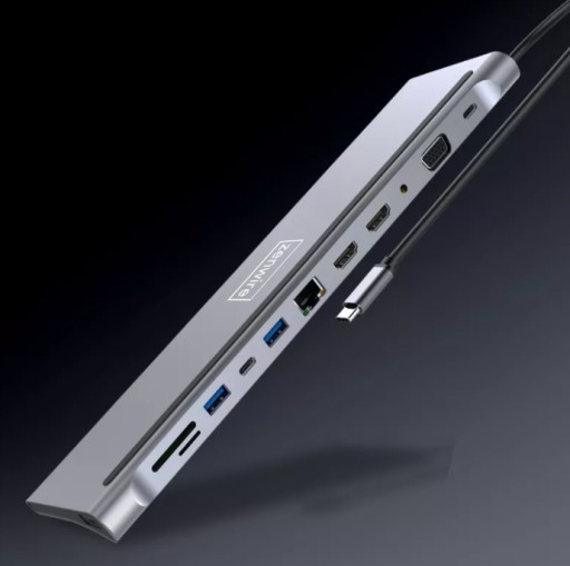 Wysokiej jakości wielofunkcyjna stacja dokująca 12w1 marki ZENWIRE z obsługą wszystkich najbardziej niezbędnych portów. Adapter umożliwia jednoczesne podłączenie do trzech monitorów 2x pod HDMI oraz VGA.