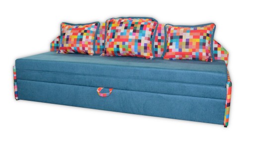 Nowoczesna kanapa w atrakcyjnej cenie i ciekawej kolorystyce. Wygodna kanapa idealna do pokoju dziennego, salonu lub pokoju młodzieżowego. Rozkładana z funkcją spania, zawiera pojemnik na pościel i poduszki w cenie.
