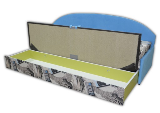 Rozkładanie tapczanu polega na wysunięciu skrzynki i przewróceniu jednej części poduchy na skrzynkę. Skrzynka jest pojemna i bez problemu zmieści się wasza pościel.