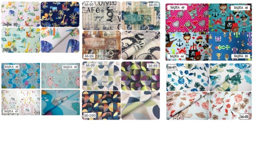 Dostępne tkaniny widoczne na dole strony