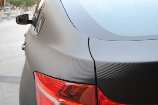 - Samochód uzyskuje efekt wyglądu włókna karbonowego, co w przypadku lakierowania jest niemożliwe