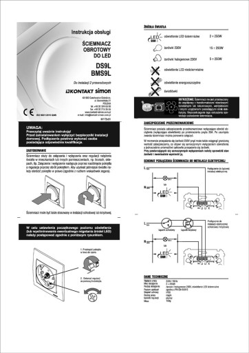 - Dodatkowe informacje - produkt wymaga dokupienia ramki z serii Simon 54 (dostępna na naszych aukcjach w kilku kolorach), przeznaczone do oświetlenia LED DIM (ściemnialnego), halogenów 230V i zwykłych żarówek 230V.