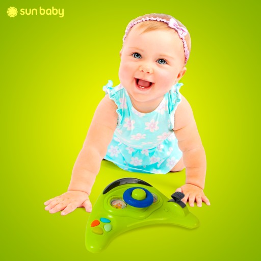 Panel z przyciskami, kierownicą i lusterkami przykuwa uwagę dziecka i zachęca do zabawy.