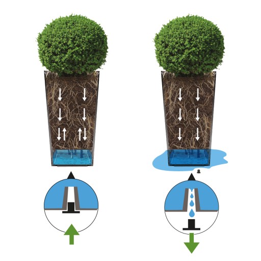 - Specjalny rezerwuar na dnie doniczki zapewnia optymalny poziom nawodnienia roślin