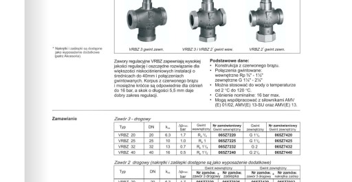 - Zawory regulacyjne VRBZ zapewniają wysokiej jakości regulację i oszczędne rozwiązanie dla większości niskociśnieniowych instalacji o średnicach do 40mm i połączeniach gwintowanych.