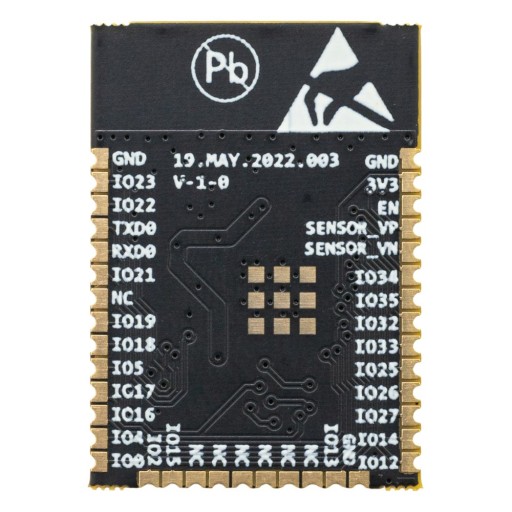 ESP32 to potężny 32-bitowy mikrokontroler. Na krawędzi modułu zostały wyprowadzone najważniejsze piny mikrokontrolera. Dostępne jest GPIO, I2C, UART, SPI, ADC, PWM, SDIO.