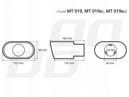 Końcówka tłumika marki AMIO, model MT019BC o owalnym kształcie 122/68mm (szerokość / wysokość), w kolorze czarny chrom. Wykonana z wysokiej jakości stali nierdzewnej co zapewnia odporność na warunki atmosferyczne, spaliny i wysokie temperatury.