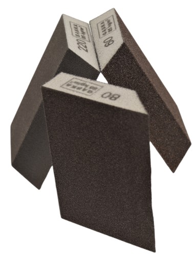 Czterostronna, elastyczna kostka ścierna do precyzyjnego przygotowania, czyszczenia i wygładzenia powierzchni z drewna, metalu, lakieru, powierzchni szpachlowanych oraz tworzyw sztucznych.