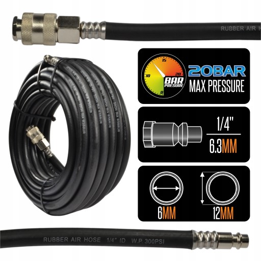 WĄŻ PRZEWÓD ZAKUWANY PNEUMATYCZNY 15m 6X12 20BAR
