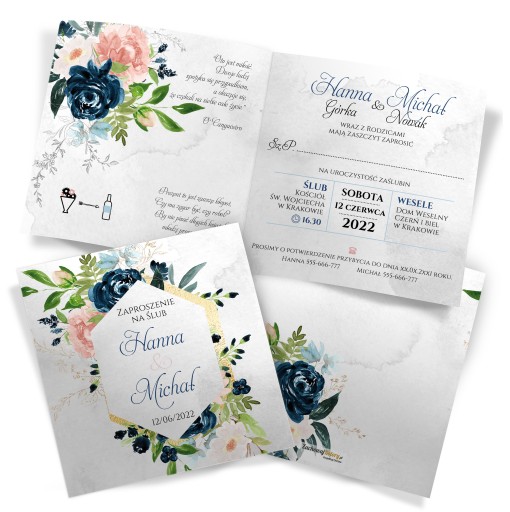 Każdy wzór posiada DOPASOWANE DO FRONTU zaproszenia wnętrze.
