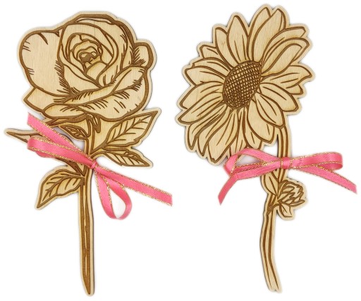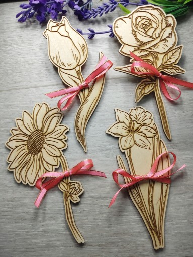 Drewniane Kwiaty wycinane i grawerowane laserowo.