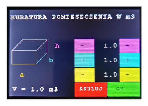 - automatyczne obliczanie parametrów ozonowania na podstawie zadanej kubatury pomieszczenia