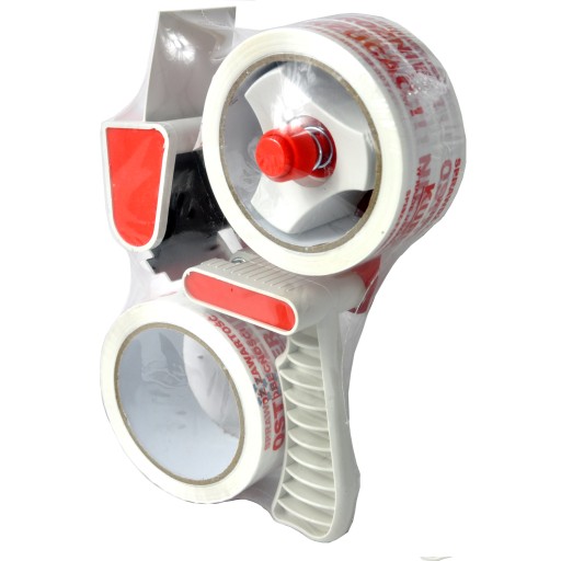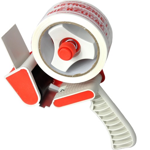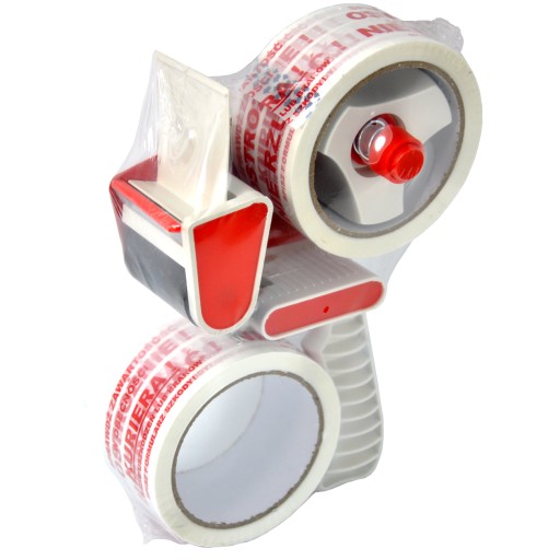 Dyspenser ręczny do szybkiego rozwijania, naklejania i odcinania taśm pakowych o szerokości do 50 mm, który idealnie sprawdzi się w domu, biurze czy magazynie. Bardzo wygodny i poręczny w użyciu. Oferowany w ekonomicznym zestawie z dwoma rolkami mocnej taśmy bezpieczeństwa z nadrukiem "OSTROŻNIE NIE RZUCAĆ, SPRAWDŹ ZAWARTOŚĆ W OBECNOŚCI KURIERA"