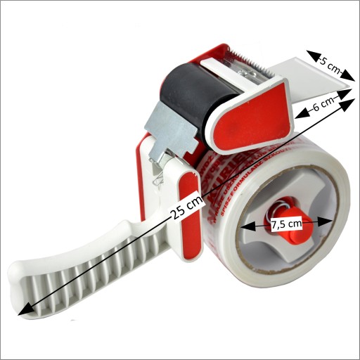 - przeznaczony do standardowych taśmy o maksymalnej szerokości 50 mm przezroczystych, brązowych, taśm ostrożności czy też taśm z nadrukiem firmowym.
