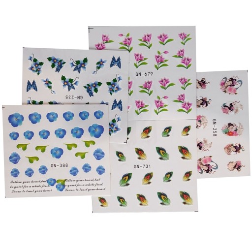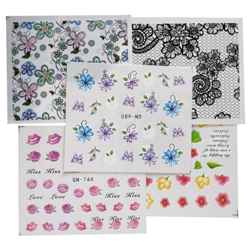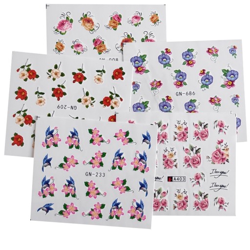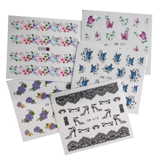 Zestaw 5 szt. naklejki wodne na paznokcie.