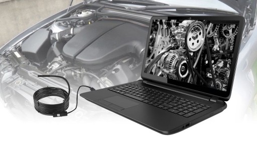 Długi (5m) i elastyczny kabel połączeniowy, pozwoli wprowadzić niewielką kamerę inspekcyjną (5.5mm i rozdzielczości VGA 640x480 pkt 30k/s) w trudno dostępne miejsce w celu uzyskania obrazu na monitorze komputera lub ekranie smartfona.