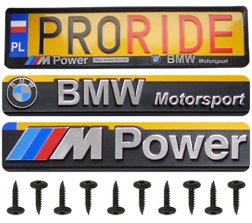 2x 3D РАМКА НОМЕРНОГО ЗНАКА BMW M POWER MOTORSPORT + ВИНТЫ