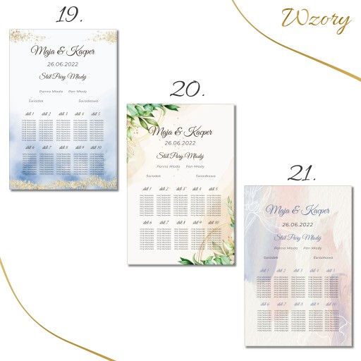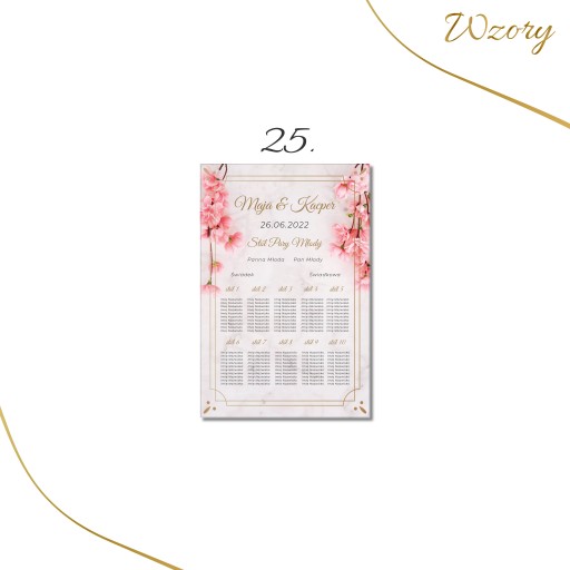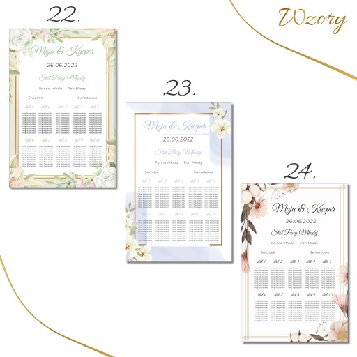 - personalizacja projektu - indywidualne dopasowanie projektu pod liczbę stołów, wpisanie listy gości