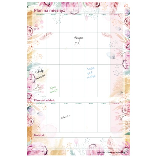 - dodatkowe miejsce na notatki w prawym dolnym rogu,